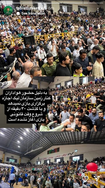 گفته می‌شود بازی فینال لیگ برتر بسکتبال به دلیل حضور هواداران در کنار زمین با تاخیر مواجه شده است.