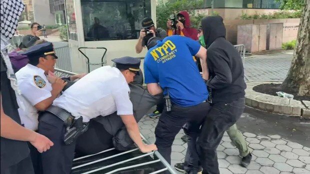در حال حاضر، درگیری‌های خشونت‌آمیزی در خارج از دفتر مرکزی اداره مهاجرت و گمرک در منهتن در جریان است و معترضان با افسران پلیس نیویورک که با خشونت برخورد می‌کنند، روبرو می‌شوند. تظاهرکنندگان به زور روی زمین کشیده شده و دستگیر می‌شوند و طبق گزارش‌ها، حداقل یک نفر با آمبولانس منتقل شده است.