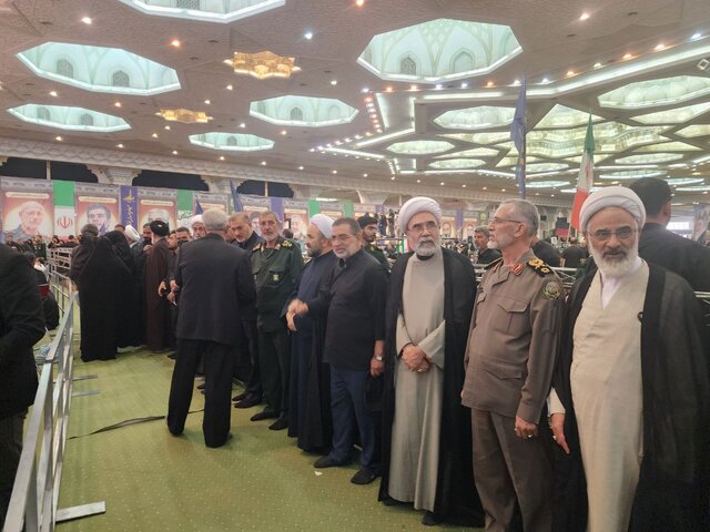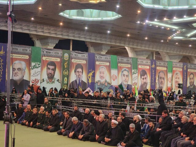 همچنین مسعود پزشکیان رئیسجمهوری، محمدباقر قالیباف رئیس مجلس شورای اسلامی و حجتالاسلام و المسلمین غلامحسین محسنی اژهای در مراسم بزرگداشت شهدای اقتدار ایران در مصلی تهران حاضر شدند.