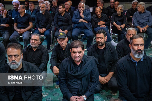 به گزارش ایسنا، این مراسم که با حضور پرشور هیات های عزاداری حسین بن علی (ع) همراه بود، جمعی از مقامات کشوری و لشکری از جمله محمدرضا عارف معاون اول رئیس‌جمهور، محمد مخبر مشاور و دستیار رهبری ، امیر موسوی رئیس ستاد کل نیروهای مسلح، نصیرزاده وزیر دفاع، امیر دریادار حبیب‌الله سیاری رئیس ستاد و معاون هماهنگ‌کننده ارتش، سرلشکر محمد پاکپور فرمانده سپاه پاسداران، محسن رضایی اولین فرمانده سپاه پاسداران، سردار علی محمد نایینی سخنگوی سپاه، سردار محمدعلی جعفری، سردار علی فدوی، غلامعلی حداد عادل، محسن رفیق دوست، محمودی رئیس شورای هماهنگی تبلیغات استان تهران، حسینی وزیر فرهنگ دولت سیزدهم و ... شرکت کردند.