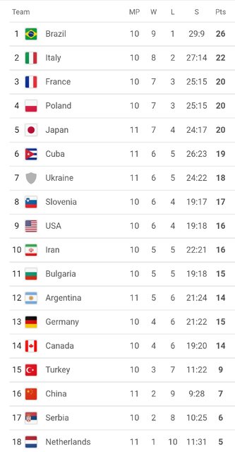 در ادامه جدول گروهبندی مرحله مقدماتی لیگ ملتهای والیبال ۲۰۲۵ تا پایان روز دوم هفته سوم آمده است: