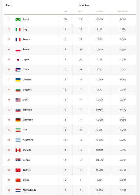 در حال حاضر کوبا، اوکراین، آمریکا، بلغارستان و اسلوونی یک برد بیشتر از ایران دارند و برای کسب رتبه های ششم و هفتم و صعود به مرحله نهایی شانس بیشتری نسبت به ایران دارند.