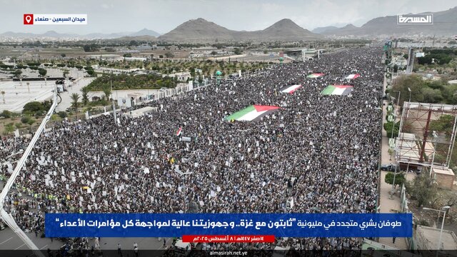 به گزارش ایسنا، در بیانیه راهپیماییهای میلیونی در میدان سبعین در صنعا آمده است: ما بر موضع جامع خود در کنار برادرانمان در غزه تاکید میکنیم.