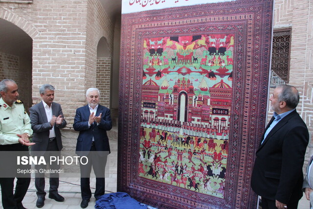 علی دارابی، قائممقام وزیر میراث فرهنگی، گردشگری و صنایعدستی در حاشیه آیین رونمایی از بزرگترین فرش تصویری ایران در باغ جهانی اکبریه بیرجند در جمع خبرنگاران نیز گفت: این فرش که بیش از یک قرن قدمت دارد، از اموال کاخ گلستان محسوب میشود و پس از صد سال به زادگاه خود در خراسان جنوبی بازگشته است. این اثر ارزشمند از فردا در معرض دید عموم قرار خواهد گرفت.