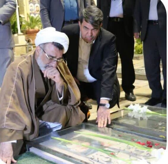 دبیر شورای عالی انقلاب فرهنگی همچنین بر مزار شهدای حمله تروریستی مسیر گلزار شهدای کرمان از جمله دختر کاپشن صورتی نیز حاضر شد.