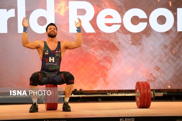 معینی با مهار وزنه ۱۸۲ کیلوگرم رکورد جهان را یک کیلوگرم شکست و طلا گرفت.