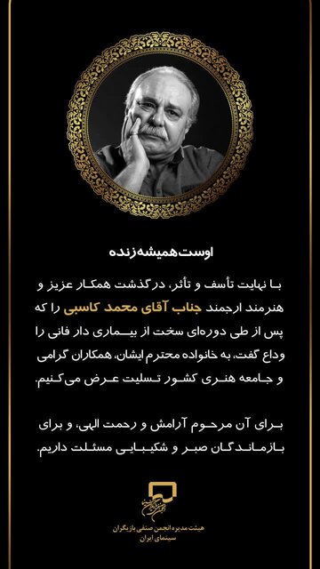 در پی درگذشت «محمد کاسبی»، خانه سینما با انتشار پیامی درگذشت این بازیگر پیشکسوت سینما، تئاتر و تلویزیون را تسلیت گفت.