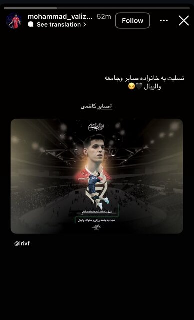 واکنش خانواده والیبال به درگذشت صابر کاظمی