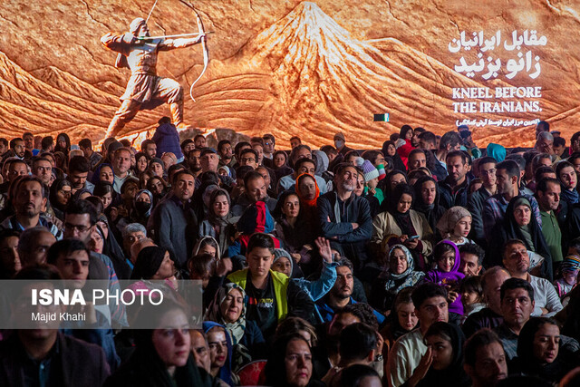 نکته قابل توجه این بود که جمعیت حاضر در میدان بهصورت کاملاً منظم و سازمانیافته در مراسم شرکت کرده بودند و بسیاری از آنها پرچم ایران را در دست داشتند. هرچند اطلاعرسانی درباره برگزاری این برنامه یکی دو روز پیش انجام شده بود، اما به نظر میرسد با هماهنگی دقیق نهادهای برگزارکننده، حضور مردم به شکلی منظم و هدفمند صورت گرفت.