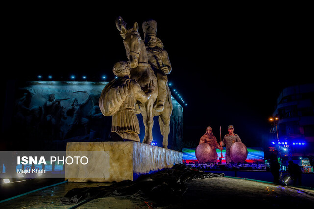 مجسمهای که در این میدان رونمایی شد، تصویر شاپور دوم ساسانی، پادشاه ایران، و والرین، امپراتور روم را به نمایش میگذارد؛ اثری که نمادی از اقتدار تاریخی پادشاهان و سرداران ایرانی در طول تاریخ به شمار میرود.
