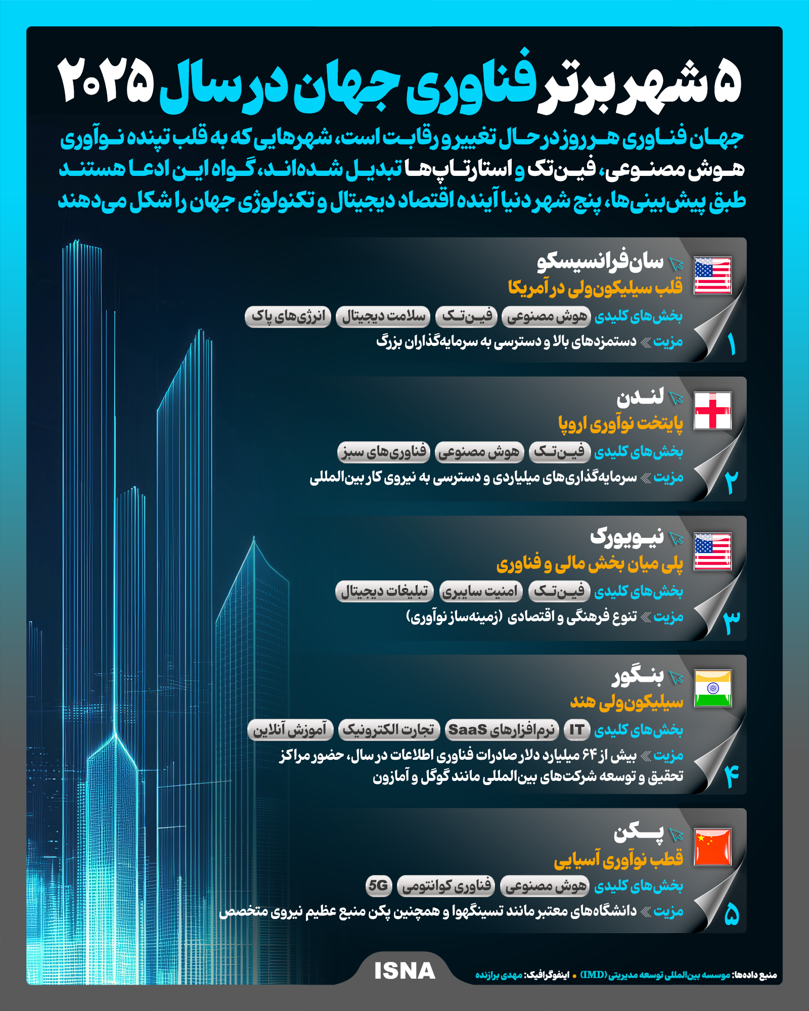 اینفوگرافیک/ ۵ شهر برتر فناوری جهان در سال ۲۰۲۵