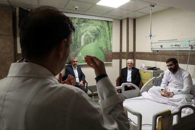 حجت الاسلام والمسلمین محسن قمی معاون ارتباطات بین الملل دفتر مقام معظم رهبری، علی مدنی زاده وزیر اقتصاد، سیدکامل تقوی نژاد دبیر هیات دولت و الیاس حضرتی رییس شورای اطلاع رسانی دولت نیز در این عیادت حضور داشتند.