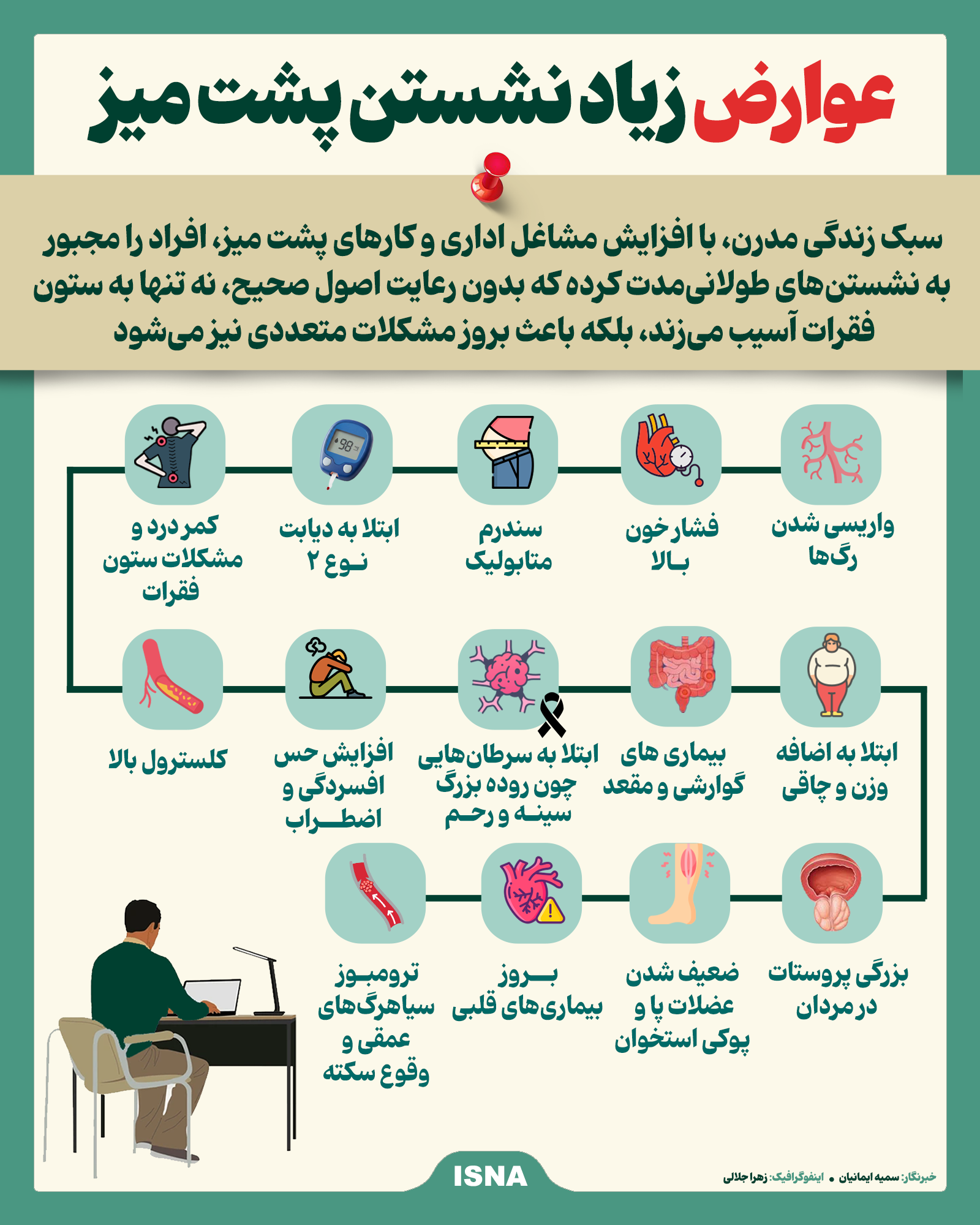 اینفوگرافیک/ عوارض زیاد نشستن پشت میز
