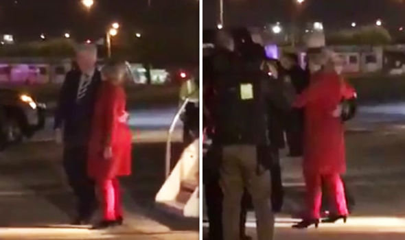 در این ویدئو هیلاری کلینتون به هنگام پایین آمدن از پلههای هواپیما در فرودگاه فیلادلفیا تلو تلو میخورد و سپس با کمک بیل کلینتون همسر و محافظانش سوار خودرو شده و دور میشوند.