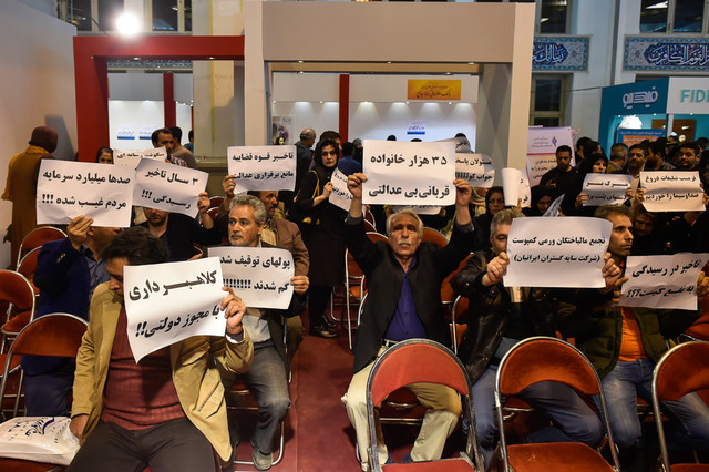 بنا بر این گزارش در حالی که معترضان در اطراف سیف تجمع کرده و شعارهایی سر میدادند، رییس کل بانک مرکزی از انتهای نمایشگاه سالن را ترک کرد.