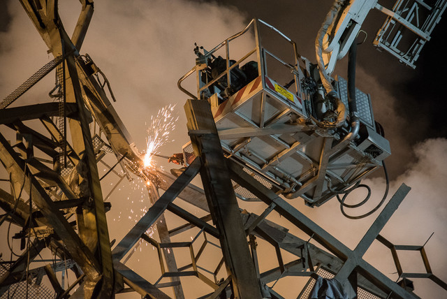 به گزارش خبرنگار ایسنا مستقر در محل حادثه پلاسکو، عملیات‌ اتش‌نشان‌ها و دستگاه‌های امدادی در محل ساختمان ریزش کرده پلاسکو همچنان ادامه دارد و چندین گروه آتش نشانی به طور همزمان عملیات هوابرش سازه و نمای فلزی، برش به وسیله قیچی مکانیکی، لکه گیری حریق و همچنین جست‌و جو برای یافتن افراد محبوس را انجام می‌دهند.