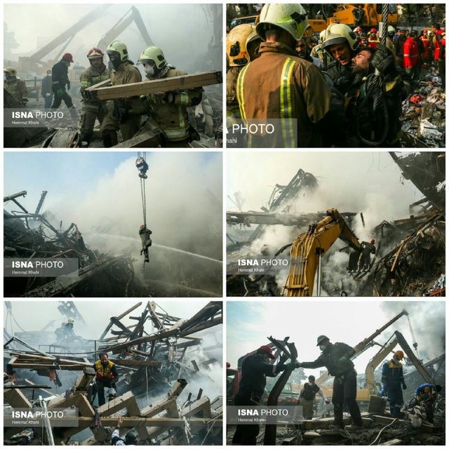 او بخش مهم این فاجعه را محبوس شدن و جان‌باختن تعدادی از آتش‌نشانان جان‌برکف دانست و تصریح کرد: تعدادی از جوانان جان برکف آتش‌نشان که در پیشانی خدمت قرار دارند در این فاجعه جاودانه شدند. ایثارگری و فداکاری با جان و تن آتش‌نشانان ممزوج شده و آنان بارها و بارها نشان‌ داده‌اند که برای نجات جان انسان، ارزشی بسیار قائل بوده و هستند.
