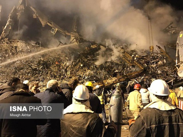 ملکی با بیان اینکه فردا نیز عملیات آتش‌نشانان در محل ادامه خواهد داشت، گفت: با توجه به نوع تخریب سازه ساختمان و پیچیدگی اسکلت آن در هم عملیات نجات و آواربرداری با مشکلاتی روبرو شده بود و دلیل کندی عملیات در ساعات اولیه نیز تلاش برای جابجا کردن سازه فلزی چند 10 تنی از روی آوار بود.