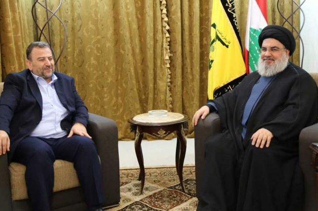 از سوی دیگر سید حسن نصرالله با صالح العاروری، معاون رئیس دفتر سیاسی جنبش حماس دیدار و درباره اوضاع اخیر در غزه گفتوگو کرد.