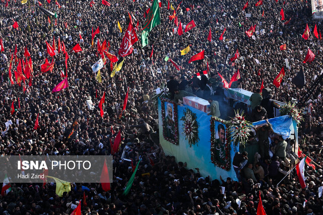 پس از آن هم سردار سلیمانی در پی اقدام تروریستی آمریکا به شهادت رسید و میلیون‌ها ایرانی در شهرهای مختلف کشور عزادار شدند؛ پیکر شهیدان این حادثه تروریستی در چندین استان خوزستان، خراسان رضوی، تهران و قم و در نهایت در کرمان تشییع شد و در نهایت سردار سلیمانی بر طبق وصیت اش در زادگاهش در کرمان  به خاک سپرده شد. متاسفانه در جریان برگزاری مراسم خاکسپاری سردار، حدود ۶۰ نفر از هموطنان در تاریخ ۱۹ دی ماه به دلیل ازدحام جمعیت از بین رفتند.