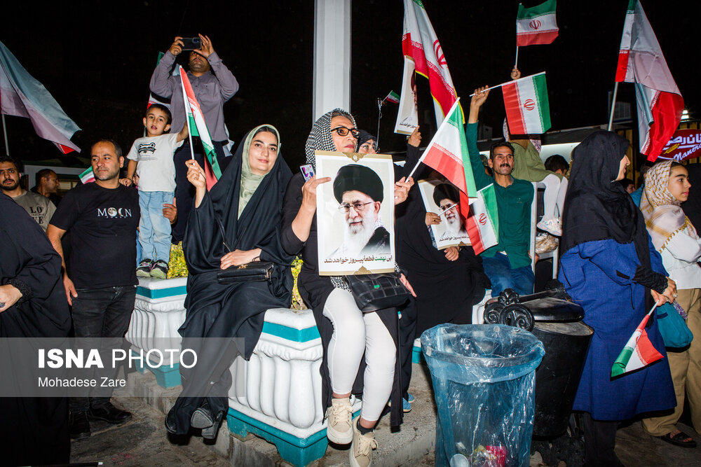 اجتماع مردم مشهد و زائران امام رضا (ع) در حمایت از اقدامات نیروهای مسلح جمهوری اسلامی ایران و عملیات «بشارت فتح»، شامگاه سه شنبه، ۳ تیر ۱۴۰۴ در میدان بیت المقدس مشهد برگزار شد.