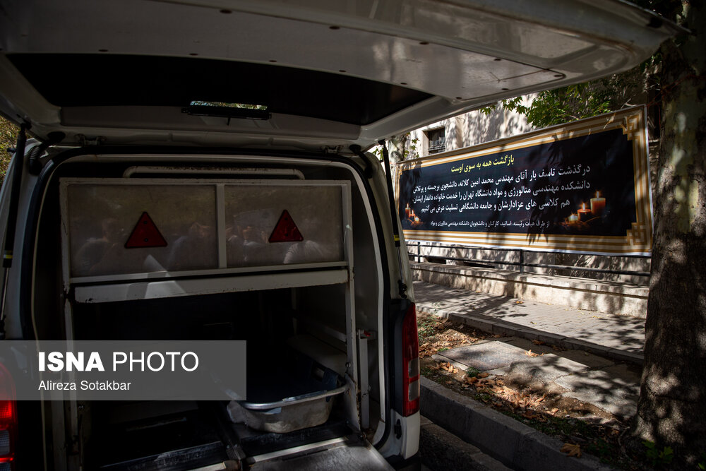 صبح امروز ۱۲ مهر پیکر دانشجوی کارشناسی ارشد رشته مهندسی متالورژی و مواد دانشگاه تهران امروز با حضور مسئولان عالی آموزش عالی و خانواده دانشگاهیان از مقابل این دانشکده تشییع شد.