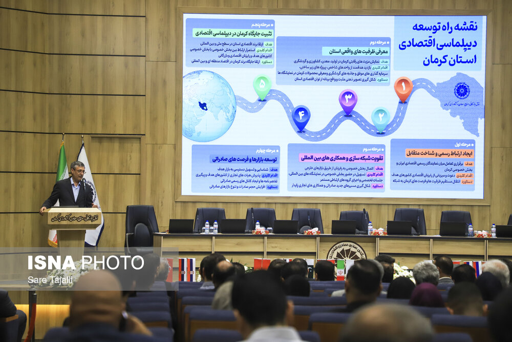 همایش معرفی و تبیین ظرفیتهای صادراتی استان کرمان، با حضور ۱۵ نفر از رایزنان اقتصادی و جمعی از مسئولان و فعالان اقتصادی شنبه ۱۹ مهر ۱۴۰۴ ،در اتاق بازرگانی، صنایع، معادن و کشاورزی کرمان برگزار شد.