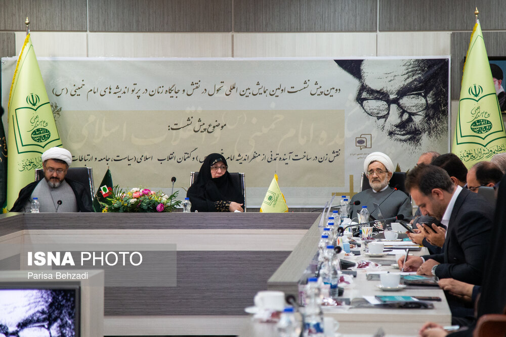 دومین پیش نشست اولین همایش بین المللی تحول در نقش و جایگاه زنان در پرتو اندیشه های امام خمینی (س) صبح امروز دوشنبه 21 مهر 1404 با حضورفاطمه طباطبایی دختر امام خمینی، حجت الاسلام علی کمصاری رئیس موسسه تنظیم و نشر آثار امام خمینی، پریسا علیلو سرپرست دفتر امور زنان و خانواده استانداری تهران، حجت الاسلام محمد مقدم رئیس پژوهشکده امام و انقلاب اسلامی، سید صادق حقیقت و محمد محمودی کیا اعضای هیئت علمی پژوهشگده امام خمینی و منصور انصاری معاون پژوهشی پژوهشکده امام خمینی در پژوهشکده امام خمینی(س) و انقلاب اسلامی برگزار شد.