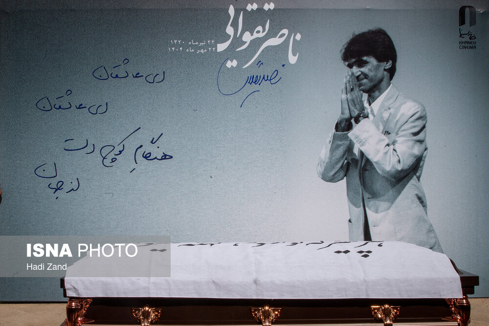 صبح امروز ۲۴ مهرماه ۱۴۰۴ پیکر ناصر تقوایی با نوای سنج و دمام از ساختمان شماره ۲ خانه سینما به امام زاده طاهر کرج بدرقه شد.