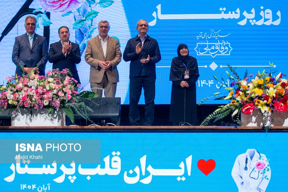 مراسم بزرگداشت روز پرستار صبح (چهارشنبه) ۷ آبان ۱۴۰۴ با حضور مسعود پزشکیان، رئیس جمهور در سالن اجلاس سران برگزار شد.