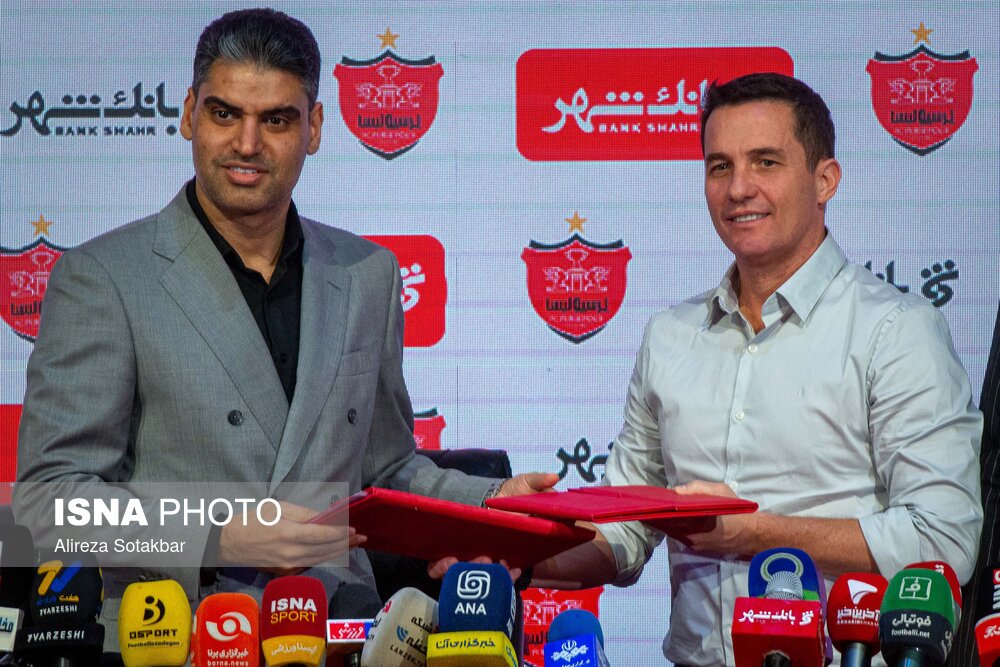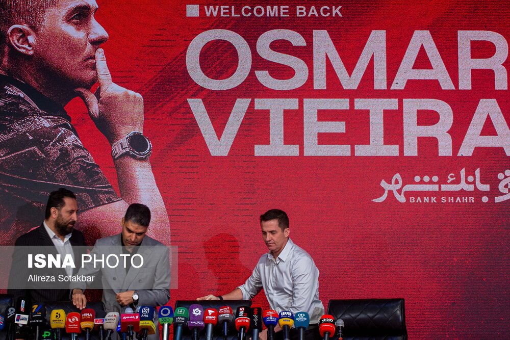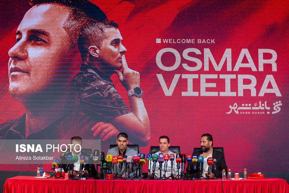 صبح امروز ۷ آبان ۱۴۰۴ مراسم معارفه و امضای قرارداد اوسمار ویرا، سرمربی جدید تیم پرسپولیس در محل بانک شهر برگزار شد.
