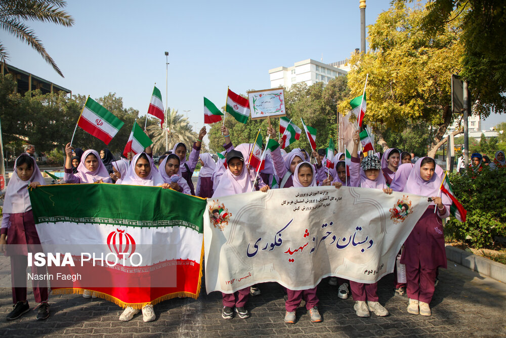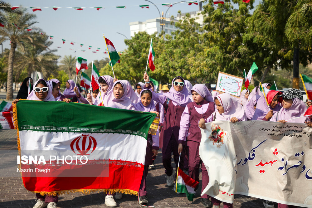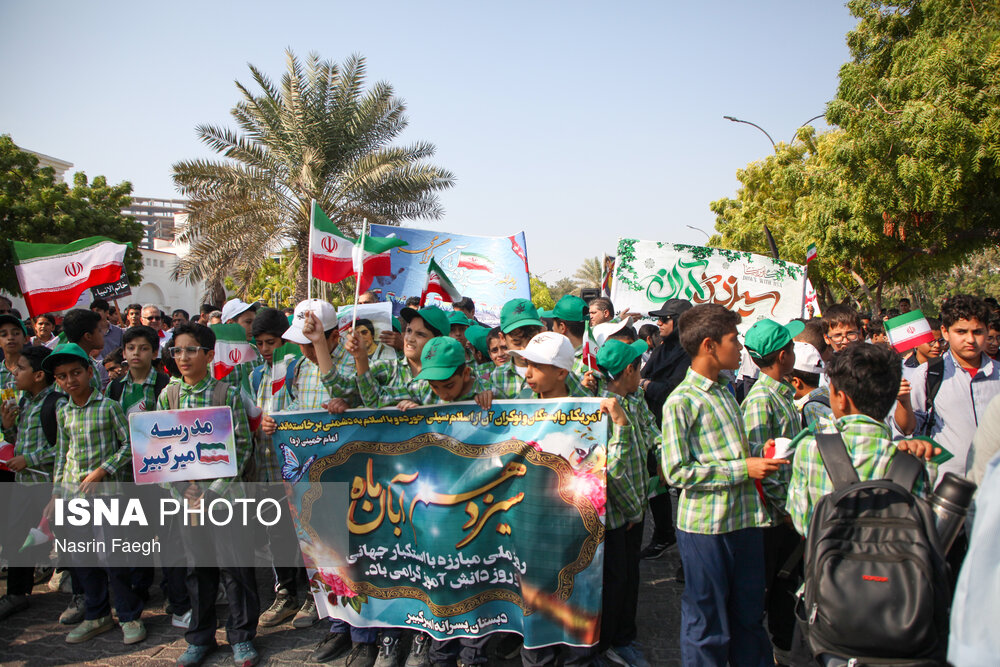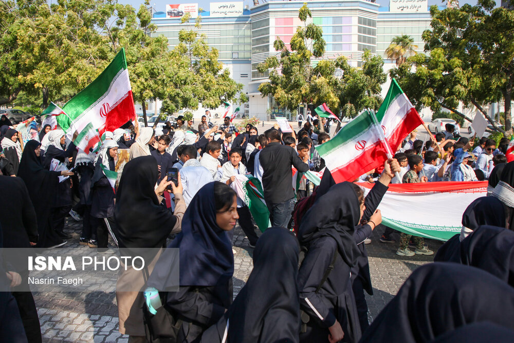 راهپیمایی روز ۱۳ آبان «روز ملی مبارزه با استکبار جهانی» امروز (سهشنبه) همزمان با ایام شهادت حضرت فاطمه زهرا (س) در جزیره کیش برگزار شد.