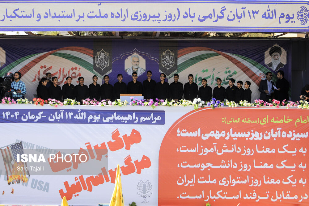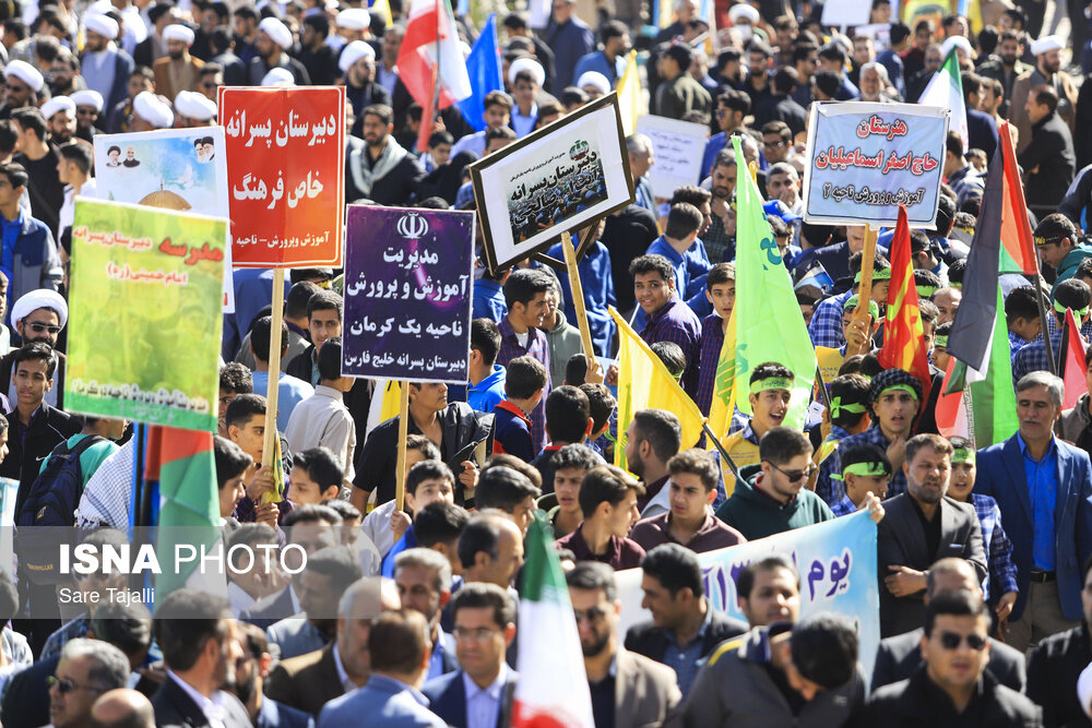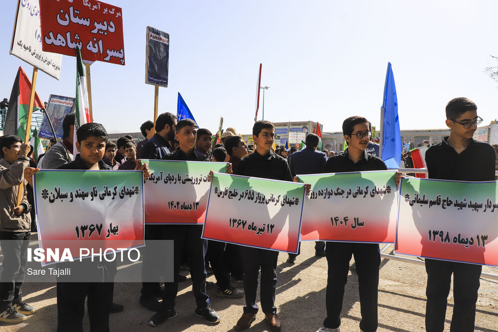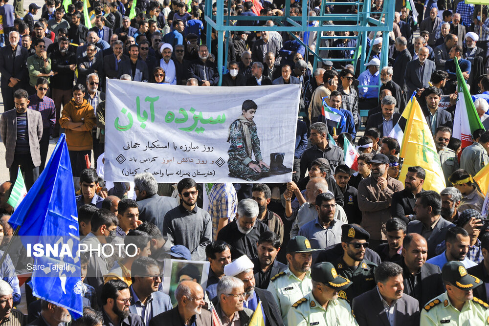 راهپیمایی روز ۱۳ آبان «روز ملی مبارزه با استکبار جهانی» امروز (سهشنبه) همزمان با ایام شهادت حضرت فاطمه زهرا (س) در کرمان برگزار شد.
