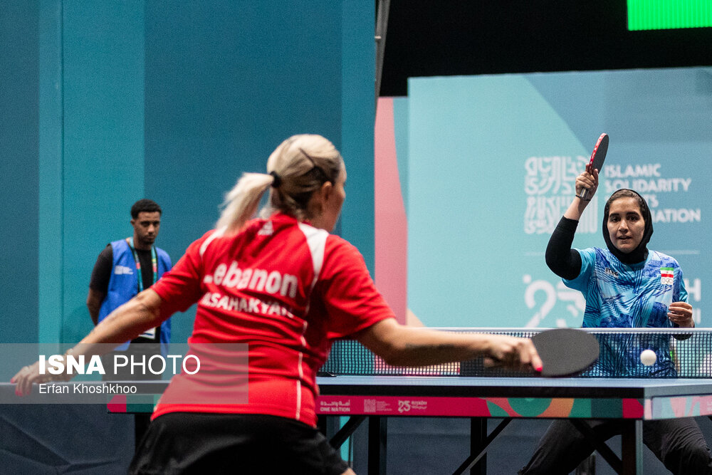 برد مقتدرانه تیم ملی تنیس روی میز بانوان ایران مقابل لبنان در بخش تیمی، در اولین رقابت از چهارچوب مسابقات کشورهای اسلامی ریاض تیم ملی بانوان تنیس روی میز ایران در اولین مسابقه از سری رقابتهای بازیهای کشورهای اسلامی در بخش تیمی موفق شد با ترکیب شیما صفایی و ستایش ایلوخانی و ندا شهسواری در مجموع هشت بر دو از سد لبنان عبور کند. در این رقابت نمایندگان کشورمان موفق شدند به ترتیب با امتیازهای ۱۱-۷ ۱۱-۵ ۱۱-۷ سه بر صفر در بخش دونفره تیمی لبنان را شکست دهند. در ادامه در بخش تک نفره ابتدا ستایش ایلوخانی مقابل حریف لبنانی با نتیجه دو بر یک شکست خورد که این مسابقه با امتیازهای ۷-۱۱/۱۱-۵/۵-۱۱ بسود حریف لبنانی به پایان رسید. و در ادامه ندا شهسواری تنها یک برد برای اتمام هشت دست این رقابت نیاز داشت که بانوی باتجربه ایران موفق به شکست ۱۱ بر ۳ حریف لبنانی شد تا در مجموع تیم ملی تنیس روی میز بانوان ایران با نتیجه ۸ بر ۲ حریف لبنانی خود را شکست داده باشد.