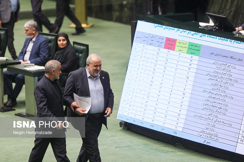 جلسه علنی مجلس به ریاست محمد باقر قالیباف دوشنبه ۱۹ آبان ۱۴۰۴ برگزار شد و نوبت اول بررسی عملکرد یکساله دولت در اجرای برنامه هفتم توسعه در دستورکار نمایندگان قرار گرفت.در این جلسه محمدرضا عارف معاون اول رئیس جمهور، مصطفی پورمحمدی رییس سازمان برنامه و بودجه، فرزانه صادق مالواجرد وزیر راه و شهرسازی، عباس علی آبادی وزیر نیرو، محسن پاکنژاد وزیر نفت و سید ستار هاشمی وزیر ارتباطات و فناوری اطلاعات هم به نمایندگی از دولت حضور دارند.
