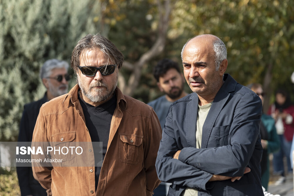 • سیف الله صمدیان و حسن پورشیرازی در تشییع پیکر «همایون ارشادی»
