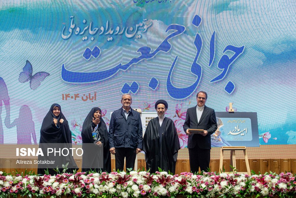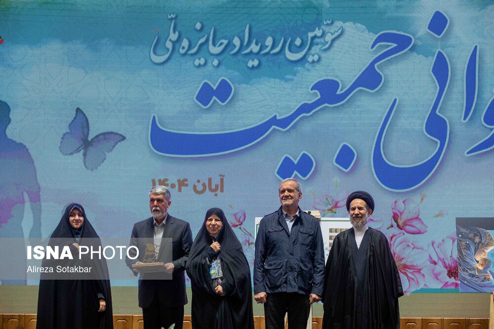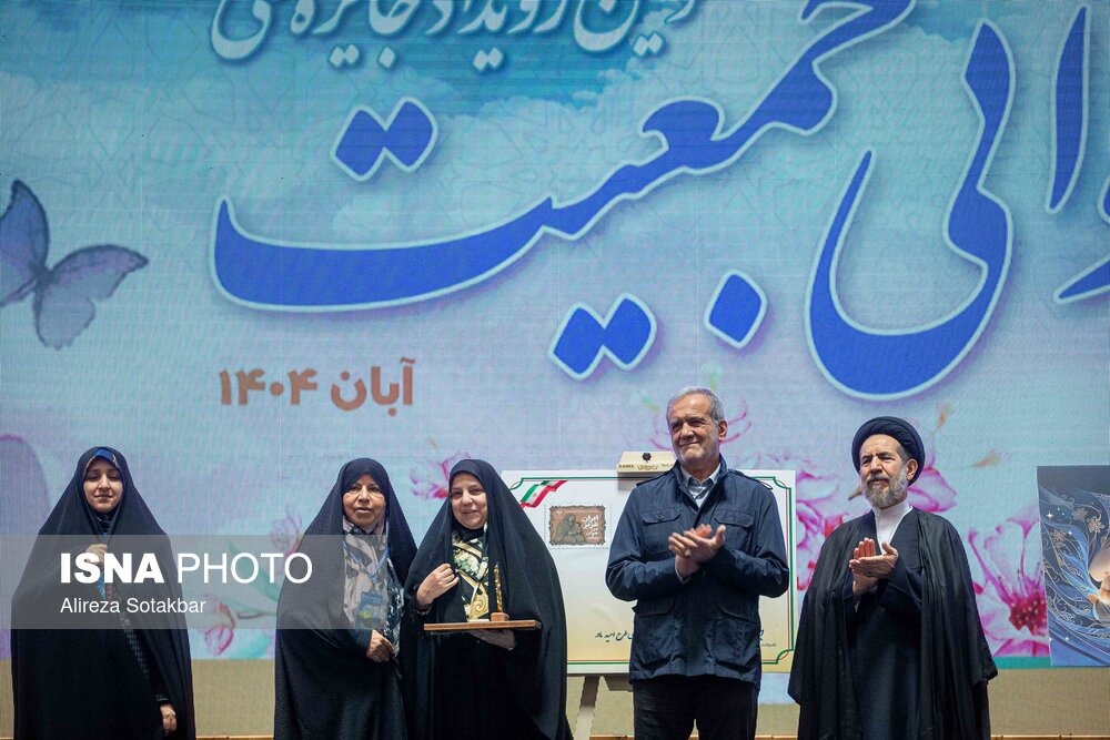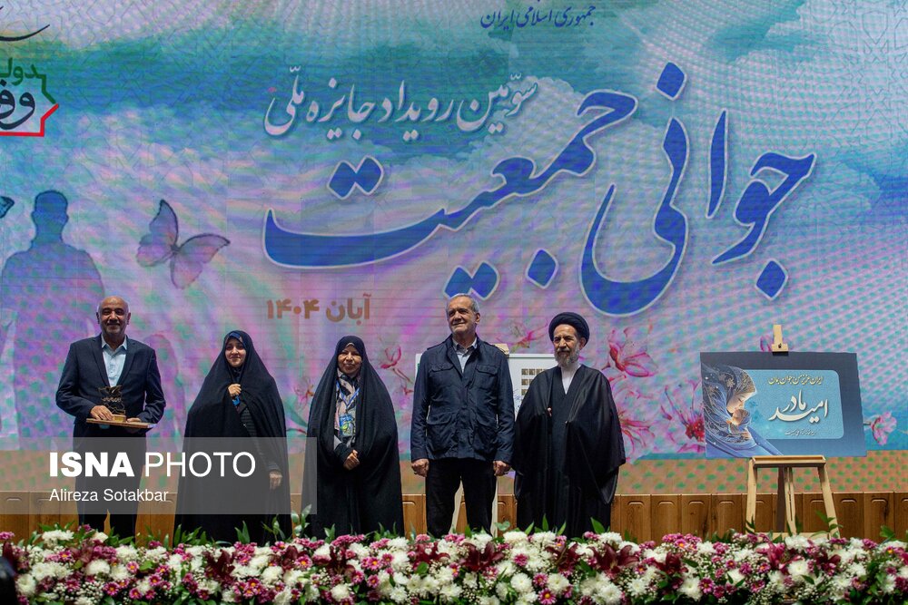 • تقدیر از برگزیدگان توسط مسعود پزشکیان، رئیس جمهور در سومین رویداد جایزه ملی جوانی جمعیت