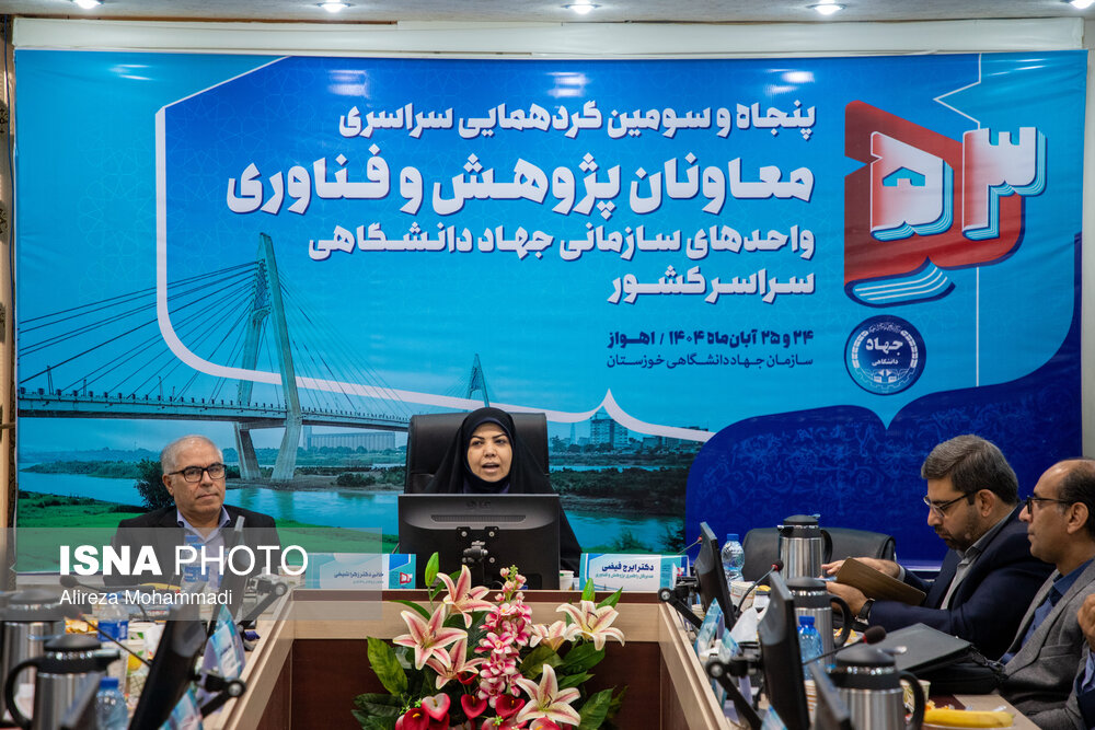 • دکتر زهرا شیخی معاون پژوهش و فناوری جهاددانشگاهی در پنجاه‌وسومین گردهمایی معاونان پژوهشی جهاددانشگاهی در خوزستان