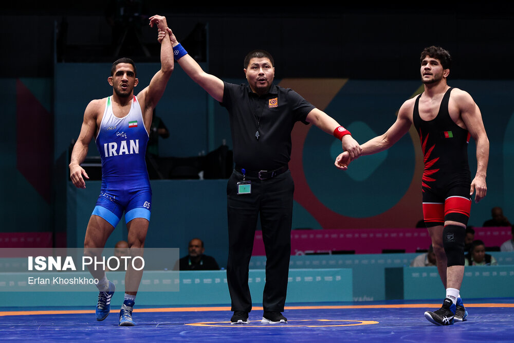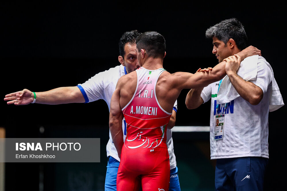 در پایان دور مقدماتی رقابت های ۲ وزن نخست کشتی آزاد بازی های همبستگی کشورهای اسلامی در ریاض عربستان، رحمان عموزاد دارنده مدال های طلای جهان و نقره المپیک راهی فینال وزن ۶۵ کیلوگرم شد اما علی مومنی در وزن ۵۷ کیلوگرم به دیدار رده بندی رفت.