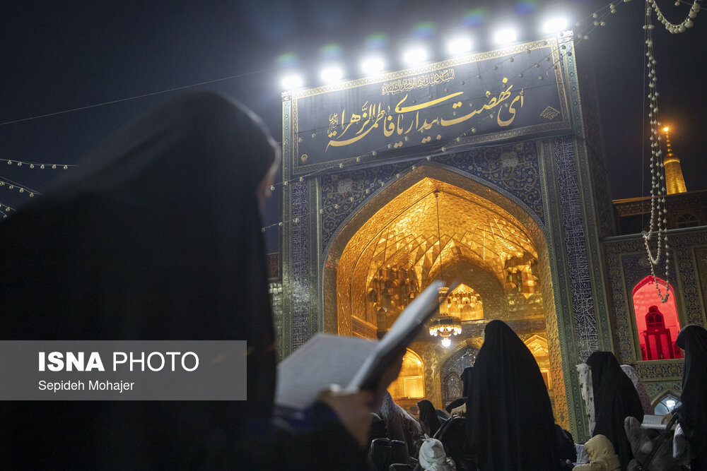 در شب شهادت حضرت فاطمه (س)، زائران و مجاوران بارگاه منور رضوی با برگزاری عزاداری، جهت عرض تسلیت به حرم حضرت رضا (ع) مشرف شدند.