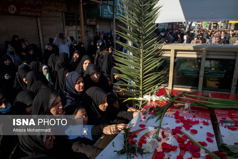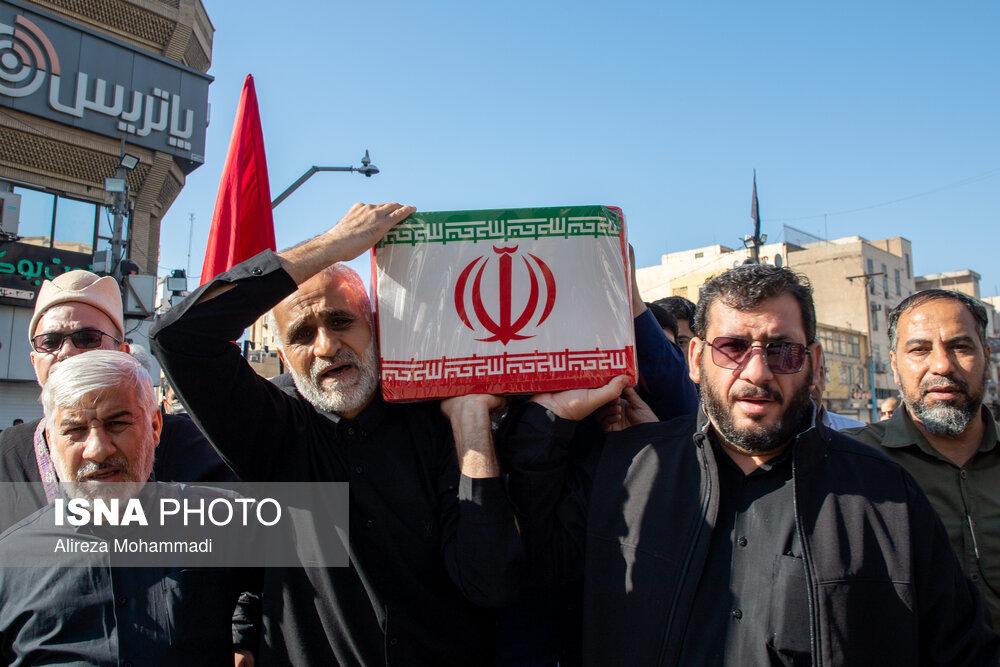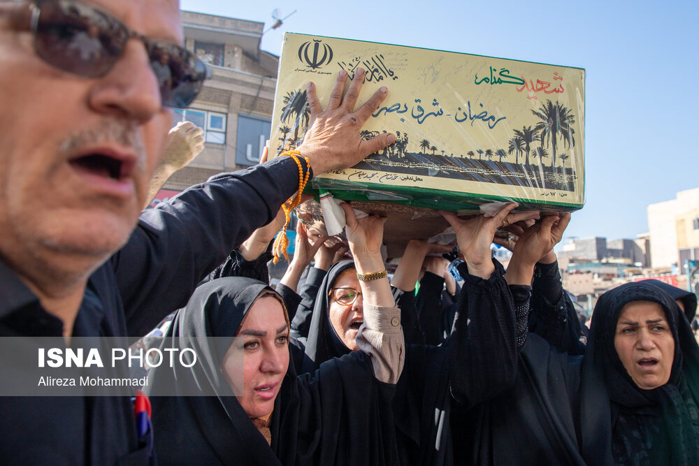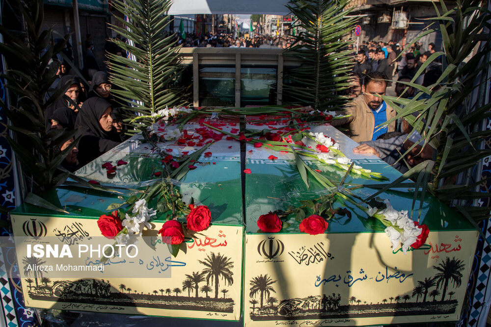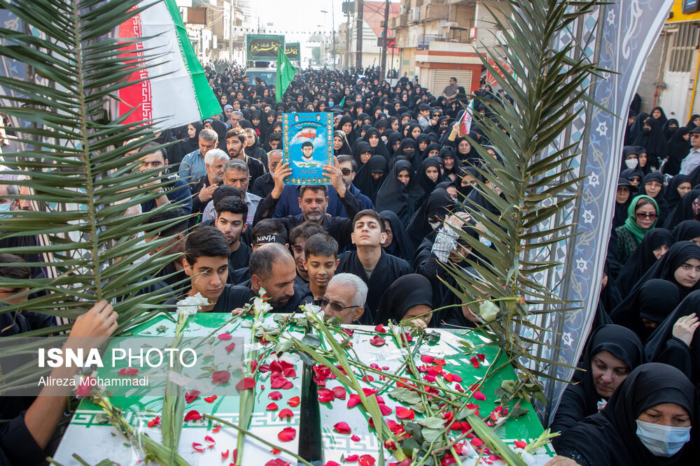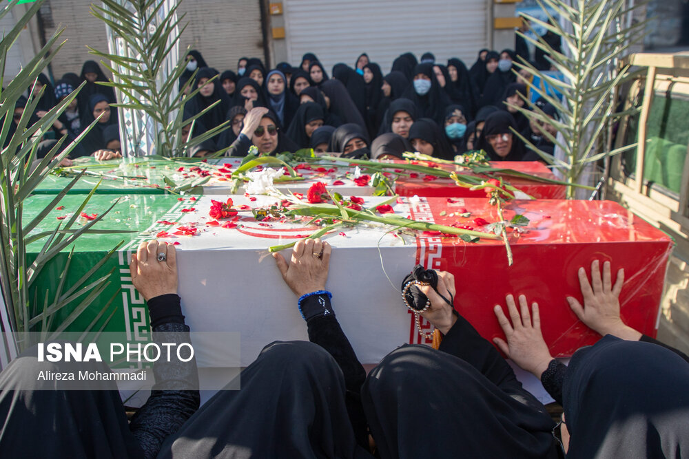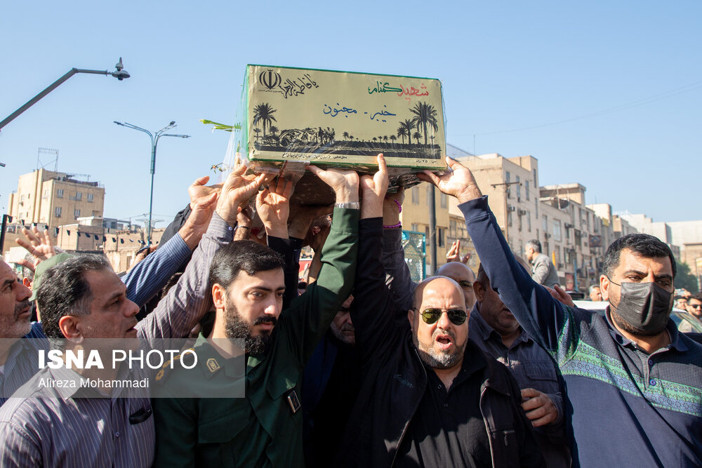مراسم تشییع پیکرهای مطهر هشت شهید گمنام تازه تفحص شده دفاع مقدس، دوشنبه ۳ آذر همزمان با سالروز شهادت حضرت فاطمه زهرا (س) با استقبال خانواده شهدا، ایثارگران، مسئولان و اقشار مختلف مردم اهواز برگزار شد.