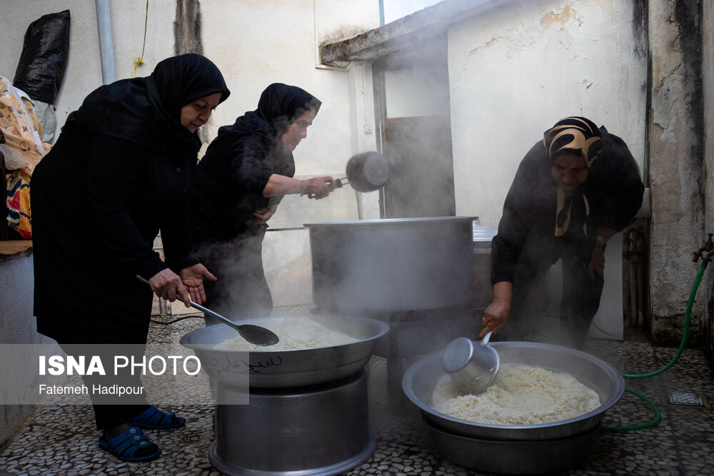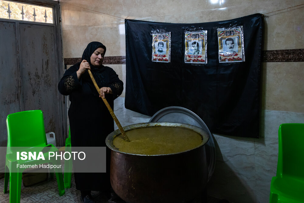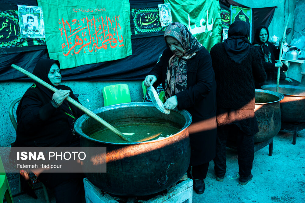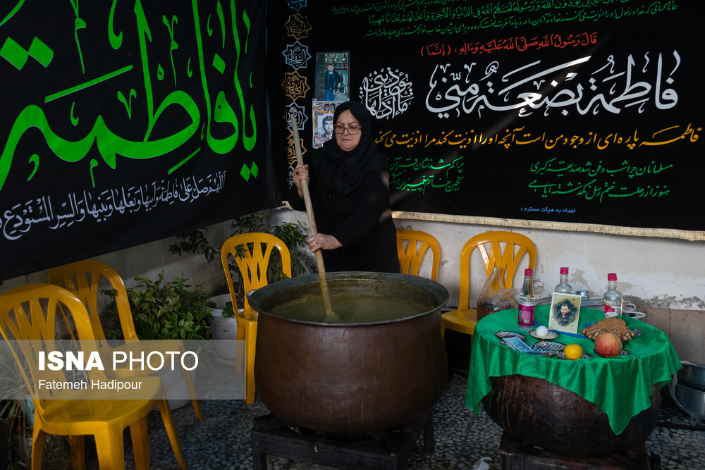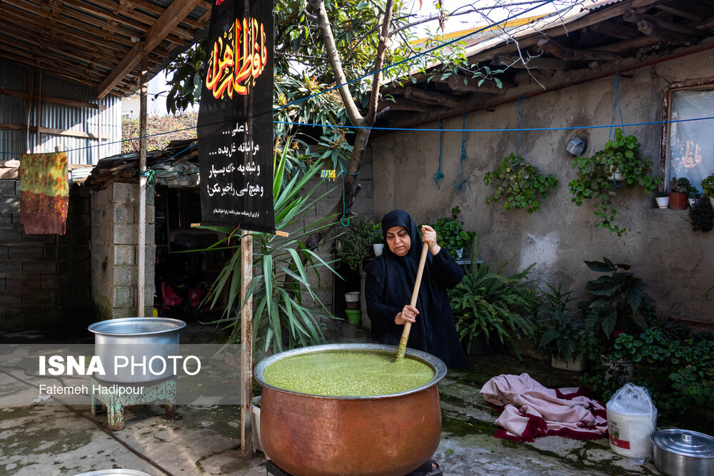 در سالروز شهادت حضرت فاطمه زهرا(س) هرخانه که پرچم سبزی بر سردر آن آویخته با یک یا چند دیگ آش نذری میزبان مردم است.