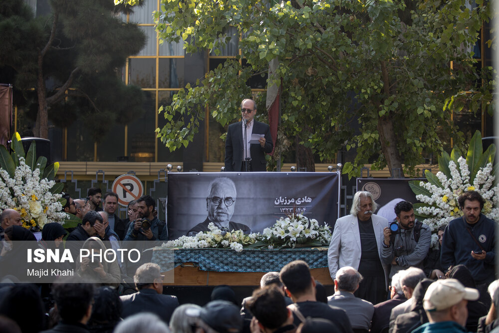 مراسم تشییع پیکر هادی مرزبان، کارگردان و بازیگر پیشکسوت تئاتر صبح امروز، سهشنبه ۴ آذر ۱۴۰۴ در پهنه رودکی، مقابل تالار وحدت برگزار شد و جمعی از دوستان، هنرمندان و همکاران این هنرمند برای وداع با او و بدرقه پیکرش به سمت قطعه هنرمندان بهشت زهرا در این مراسم حضور پیدا کردند.