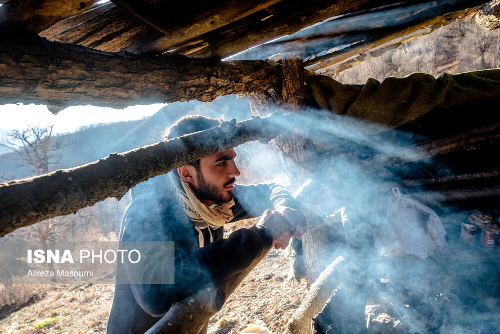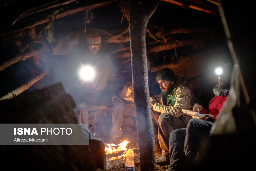 • داوطلبان در کلبه‌ چوبی با آتش خود را گرم می‌کردند.