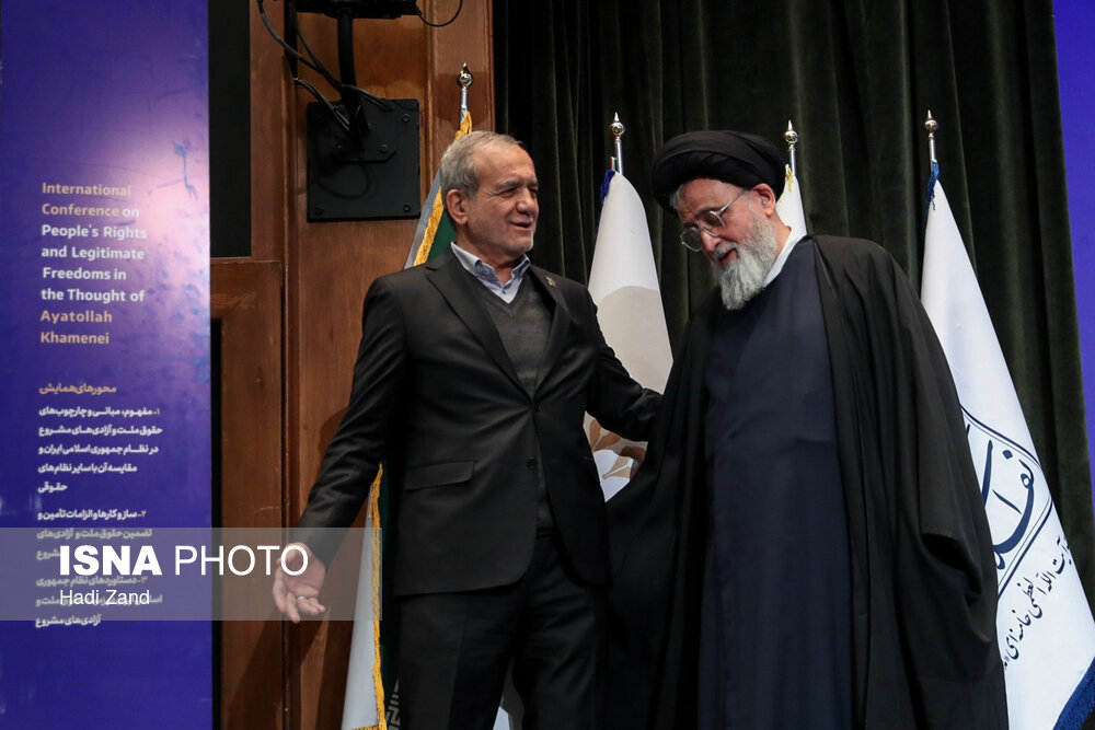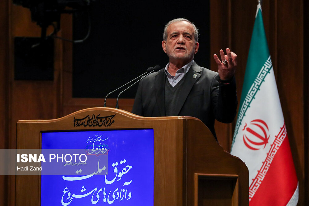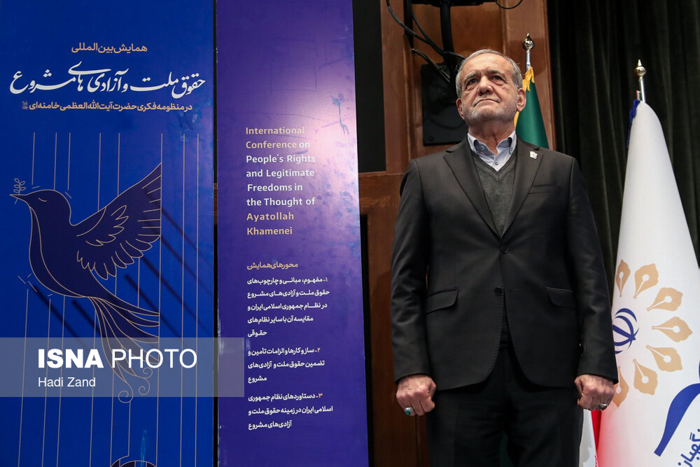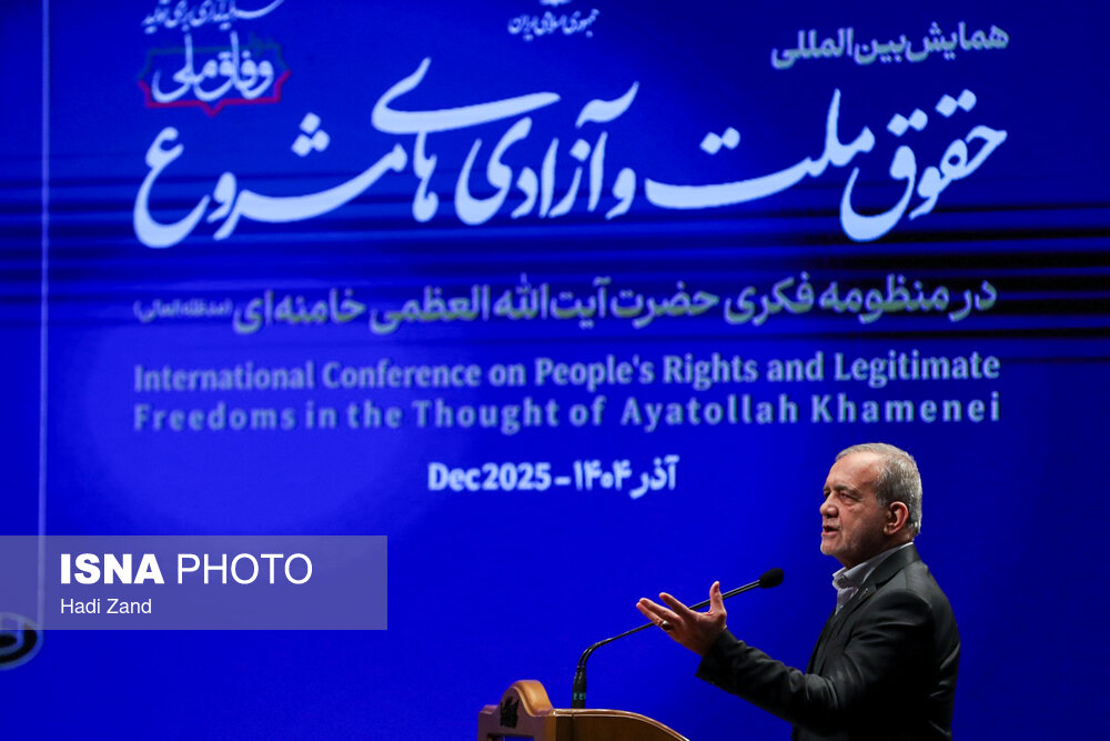 همایش بین المللی حقوق ملت و آزادی های مشروع در منظومه فکری مقام معظم رهبری صبح امروز (چهارشنبه) ۱۲ آذرماه ۱۴۰۴ با حضور مسعود پزشکیان، رییس جمهور در مرکز همایش های بین المللی صدا وسیما برگزار شد.