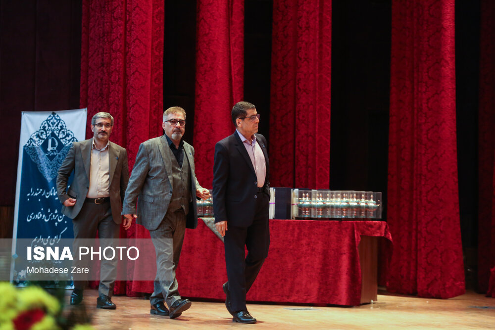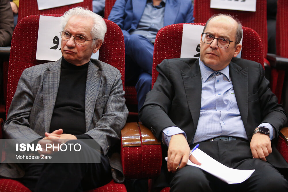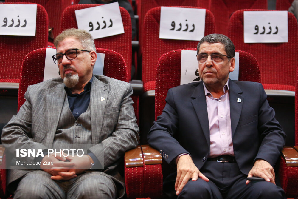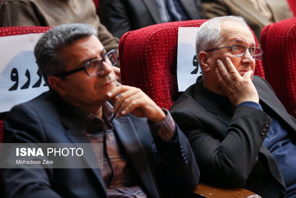 • از راست دکتر عبدالرضا جوان جعفری، رئیس دانشگاه فردوسی، حبیب رجبی‌مشهدی، معاون پژوهش و فناوری دانشگاه فردوسی مشهد در اختتامیه هفته پژوهش در دانشگاه فردوسی مشهد