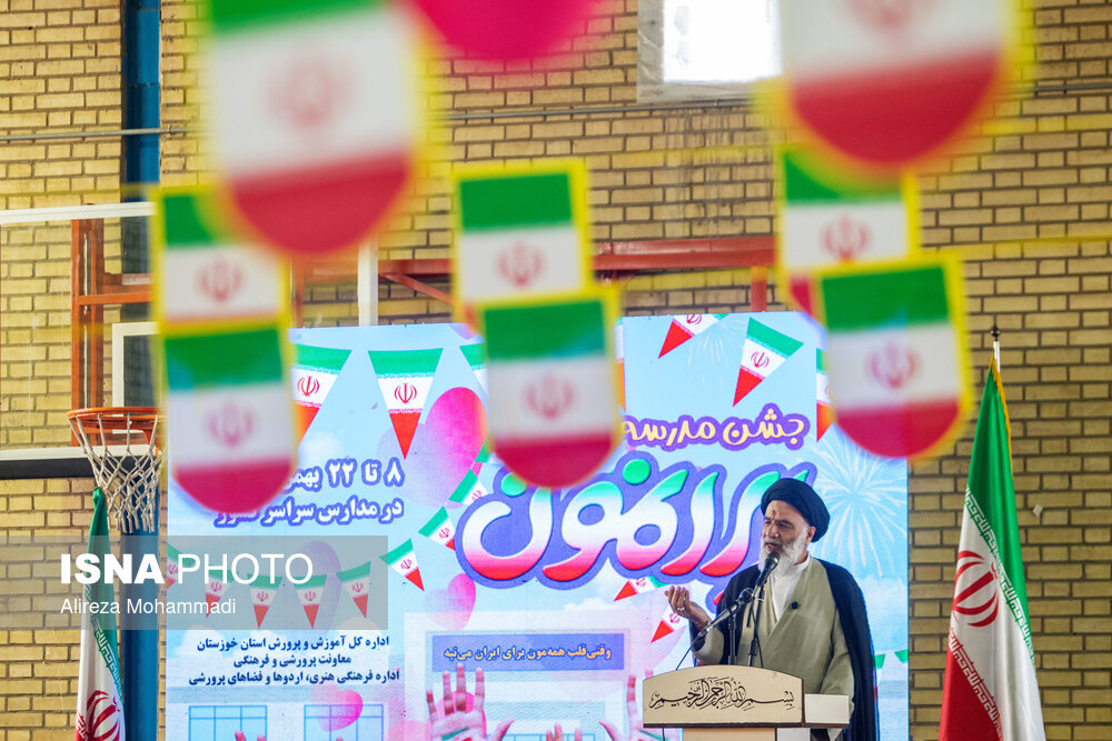 مراسم آغازین دهه مبارک فجر به همراه مراسم زنگ انقلاب، یکشنبه ۱۲ بهمن ۱۴۰۴ با حضور مسئولان استانی در دبیرستان دخترانه حجاب اهواز نواخته شد.