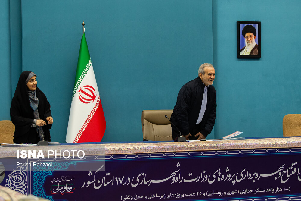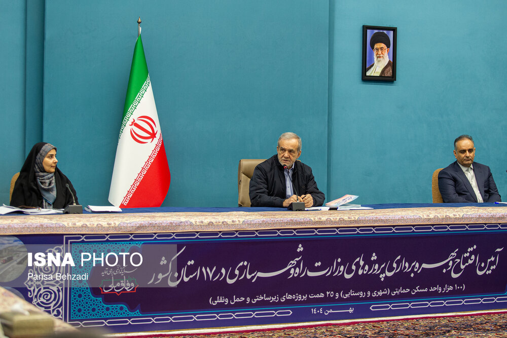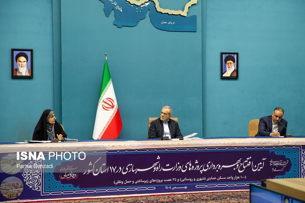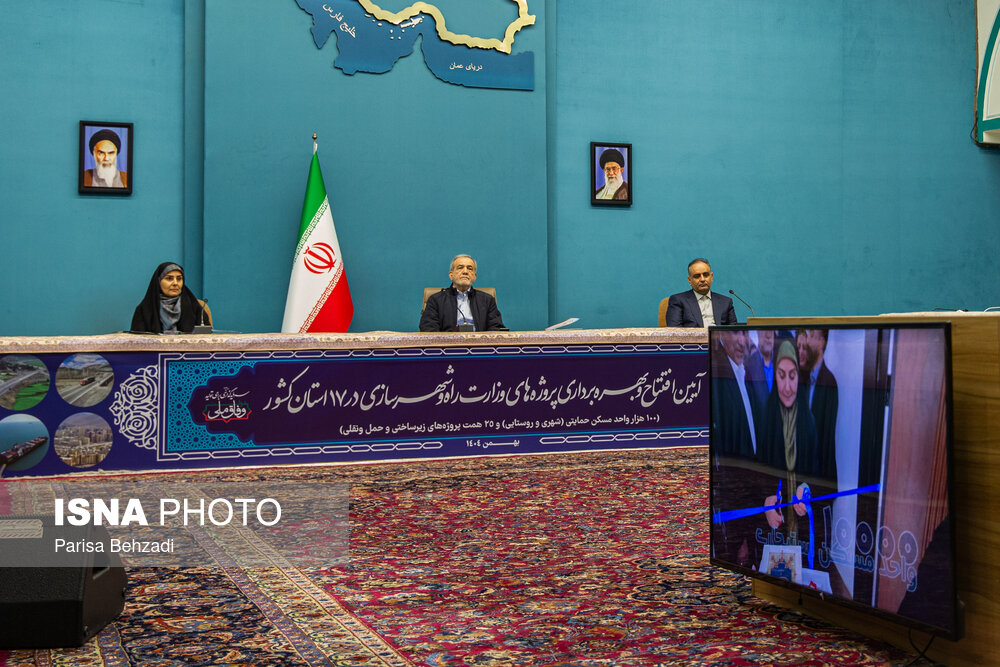 آیین بهره برداری از پروژه های وزارت راه و شهرسازی سه شنبه 21 بهمن 1404 با حضور مسعود پزشکیان، رئیس جمهور و فرزانه صادق، وزیر راه و شهرسازی در ساختمان شهید بهشتی نهاد ریاست جمهوری برگزار شد.