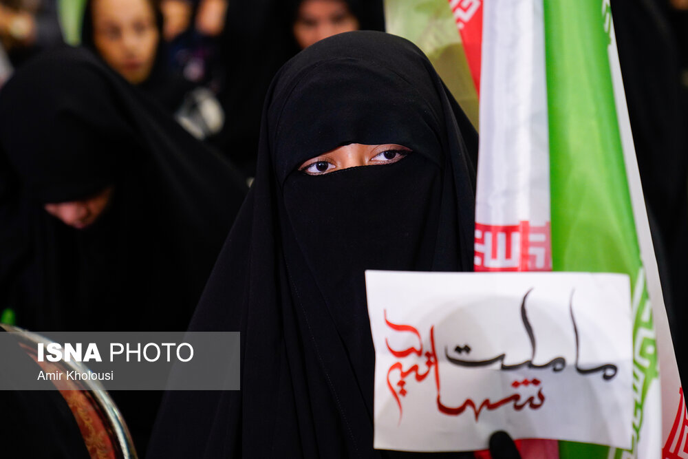 • ریحانه سلامی دختر سردار سلامی در مراسم چهلم جانباختگان ناآرامی‌های دی ماه