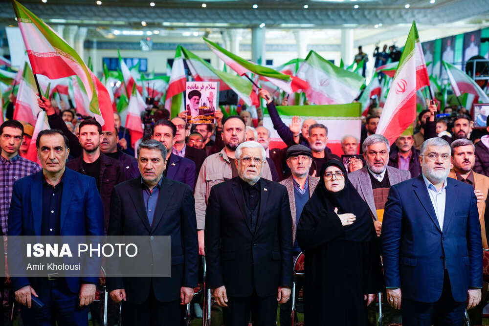 • محمدصادق معتمدیان، فرزانه صادق و محمدرضا عارف در مراسم چهلم جانباختگان ناآرامی‌های دی ماه